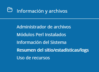 Una vez dentro, en el menú de > Información y Archivos > elige Resumen del sitio/estadísticas/logs