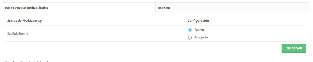 En caso excepcionales, con webs muy viejas o programaciones muy antiguas, también puedes desactivar Modsecurity por completo (no recomendado).