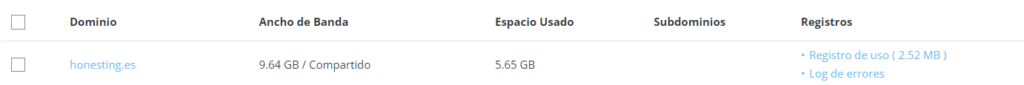 Ahí puedes ver un listado de los dominios alojados en tu plan, seguido de dos opciones: