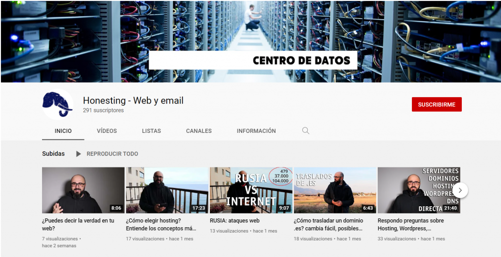 Así que tenemos que el canal de youtube de Honesting: